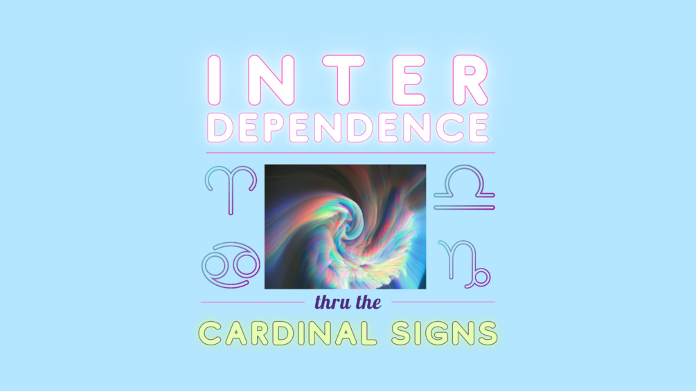 this workshop explores the concept of interdependence as a collaborative endeavor motivated by the perspective of each of the cardinal signs: aries, cancer, libra, and capricorn.